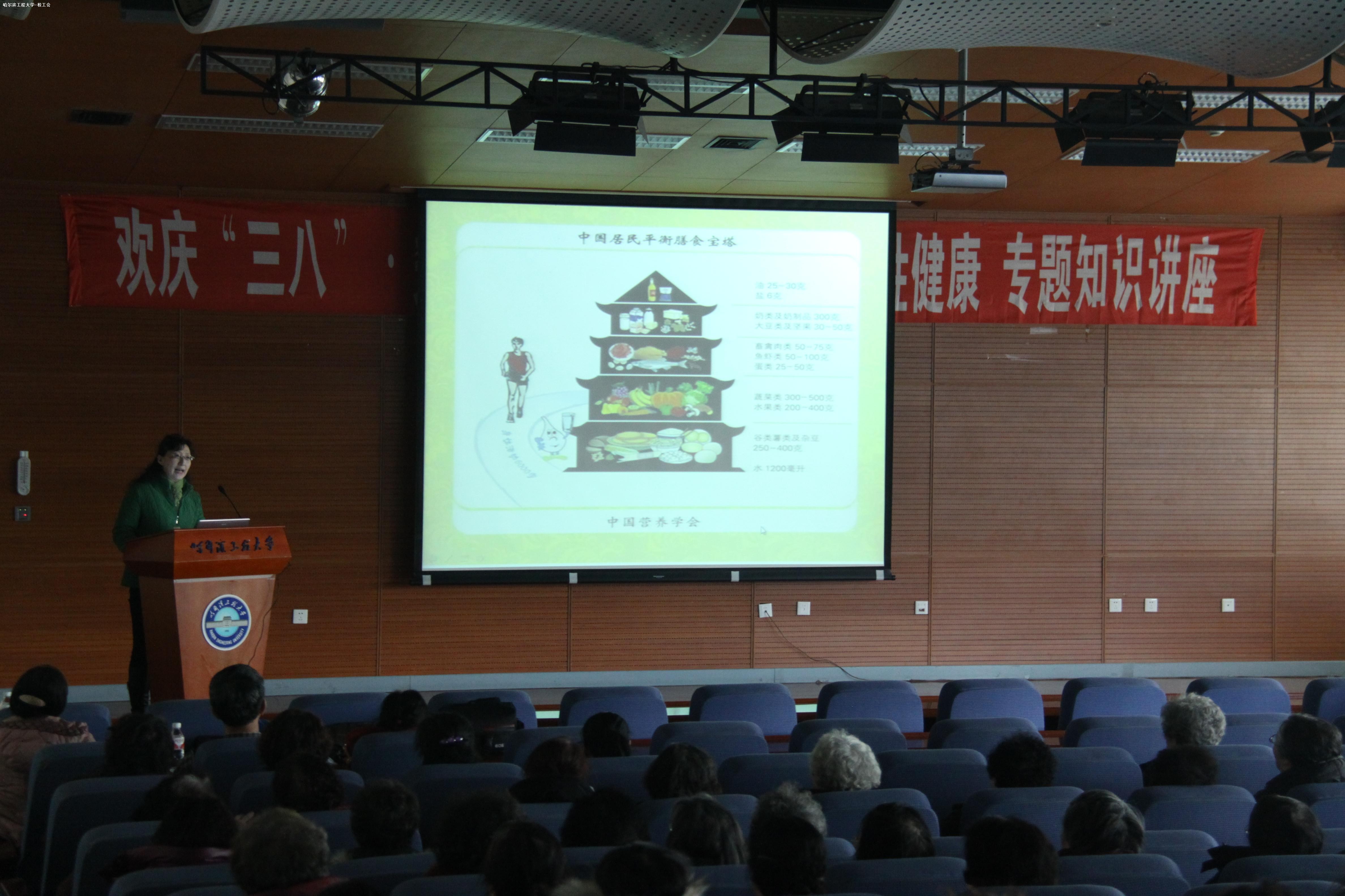 为庆祝三八妇女节,校工会于3月5日在我校启航学术报告厅举办了 欢庆“三八”・关爱女性――科学美食与女性健康专题知识讲座活动。旨在通过此次活动,丰富我校女教职工的营养与健康知识,提高身体素质,使我校广大女教职工拥有健康和美丽的同时,促进工作和生活的平衡发展。