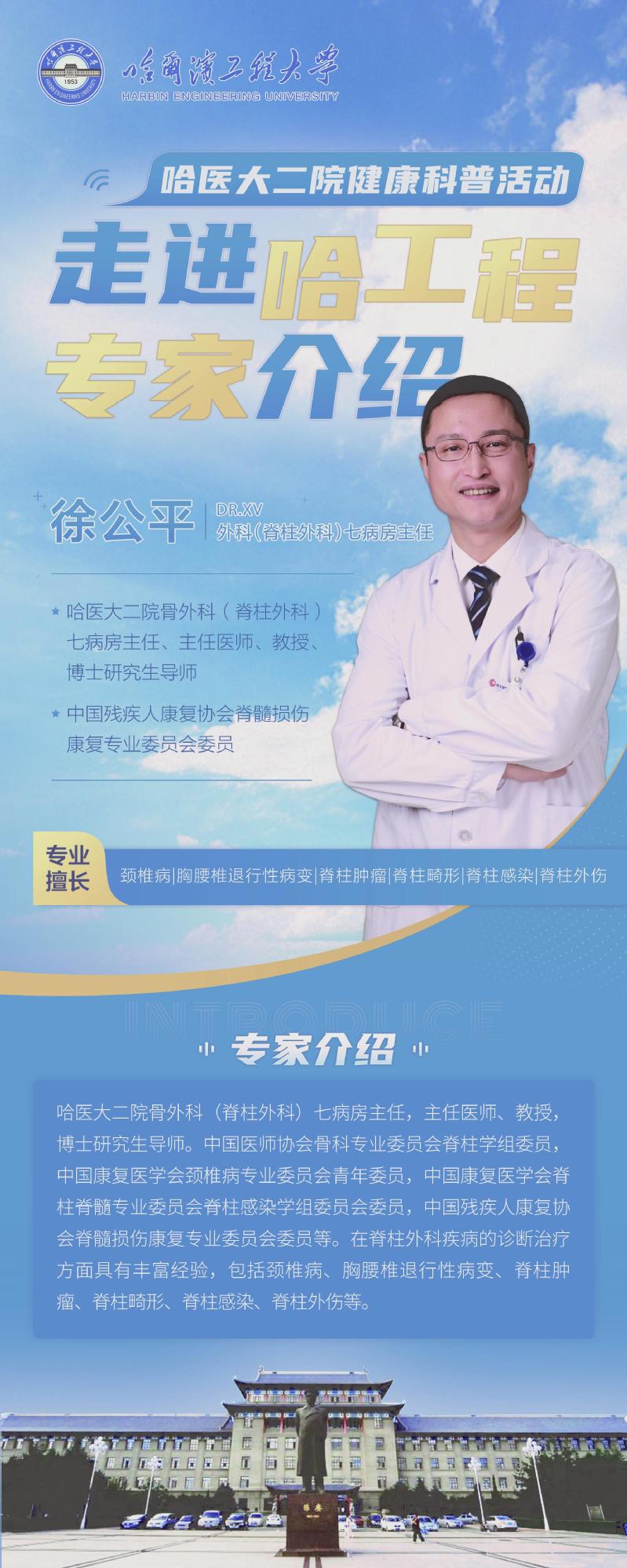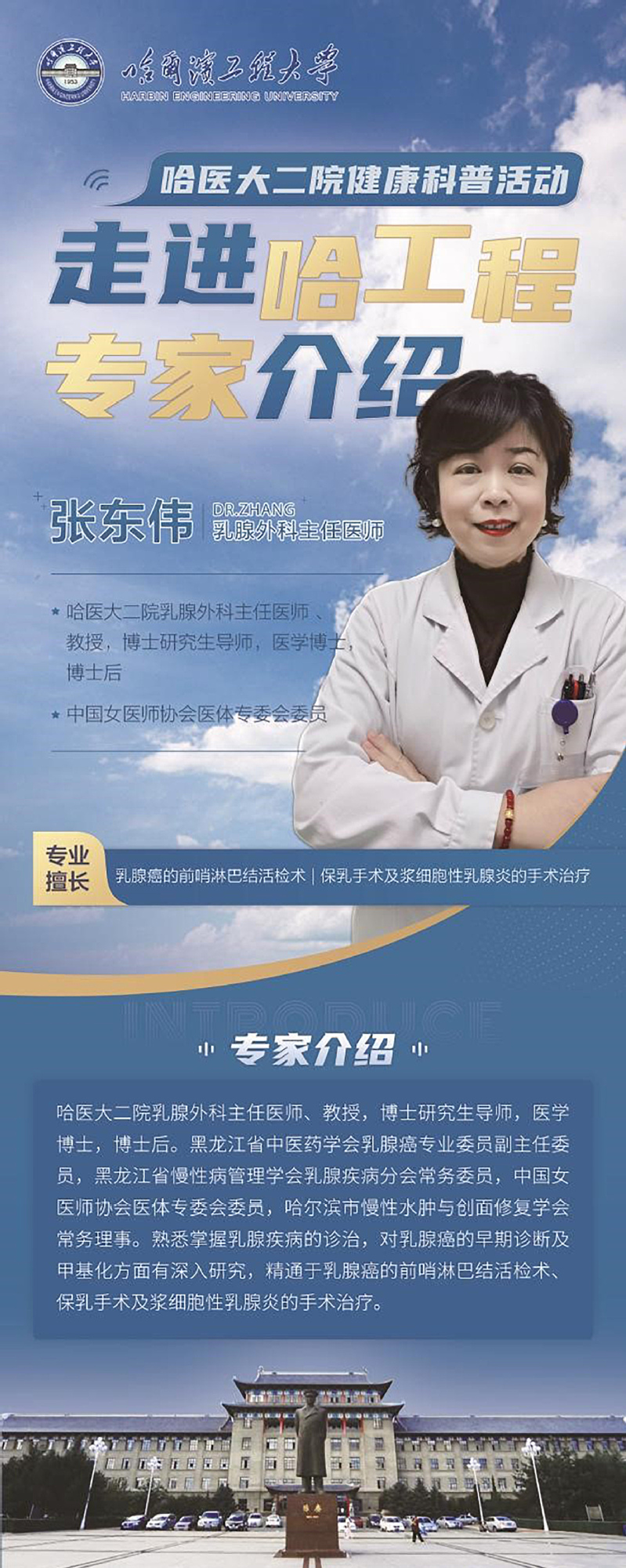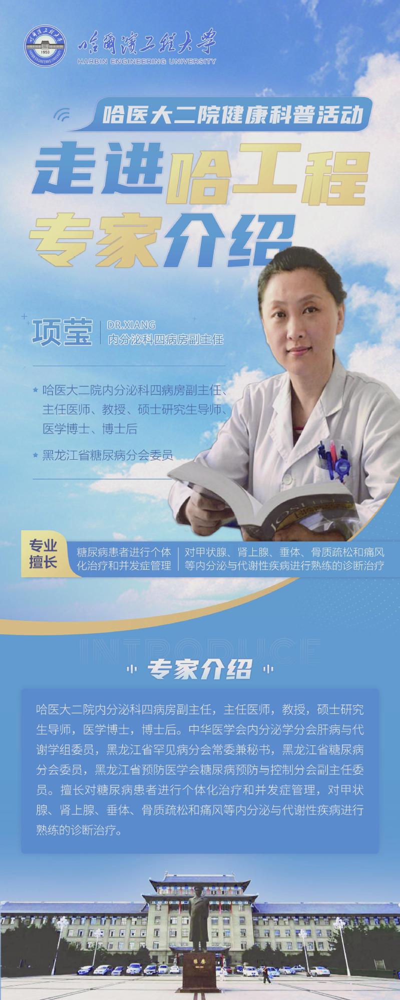 为推进“校园健康工程”,使广大教职工享受高端医疗服务,在“三八”节来临之际,校工会、校医院、离退休处、统战部联合哈医大二院,举办医疗专家送健康进校园活动。届时,将有6名省级名医、主任医师组成的专家团队为我校教职工“一对一”免费诊疗,并有一份好礼(校医院中医按摩检验券一张)赠送,欢迎大家前来参加。